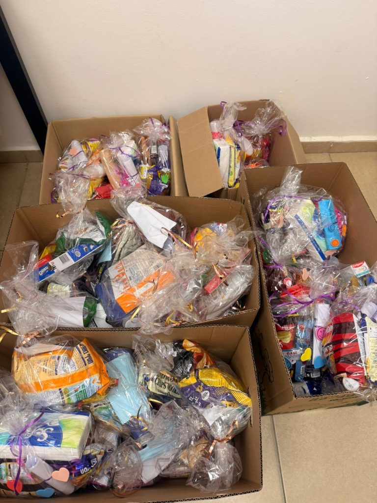 בתוך כל חבילה הונחו ברכות וציורים מהילדים, והחבילות חולקו על ידי מיכל אטלמן, סגנית בית החינוך, במחלקת השיקום ב"תל השומר", שם התקבלו בחיוך גדול ובהתרגשות רבה. הילדים שלנו למדו שבכל מעשה קטן יש כוח גדול של נתינה, ערבות הדדית ואהבת אדם.