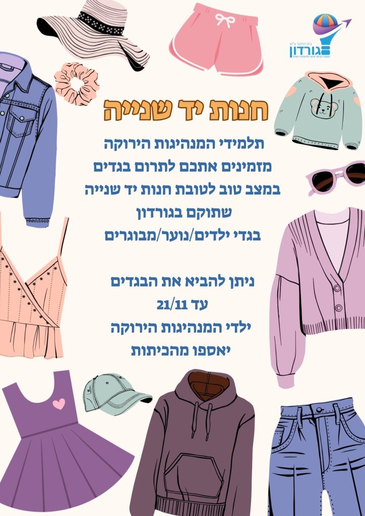 ילדי המנהיגות הירוקה פתחו את חנות הבגדים יד 2 בה הוזמנו כל התלמידים להגיע ולרכוש בגדים בסכום סמלי שיועברו כתרומה לעמותה.